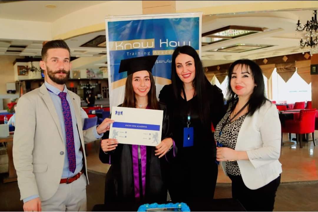 We always care about trainees and follow up on their affairs after the completion of the training coursePhoto of a trainee who has obtained the British degree that will help her in her professional career